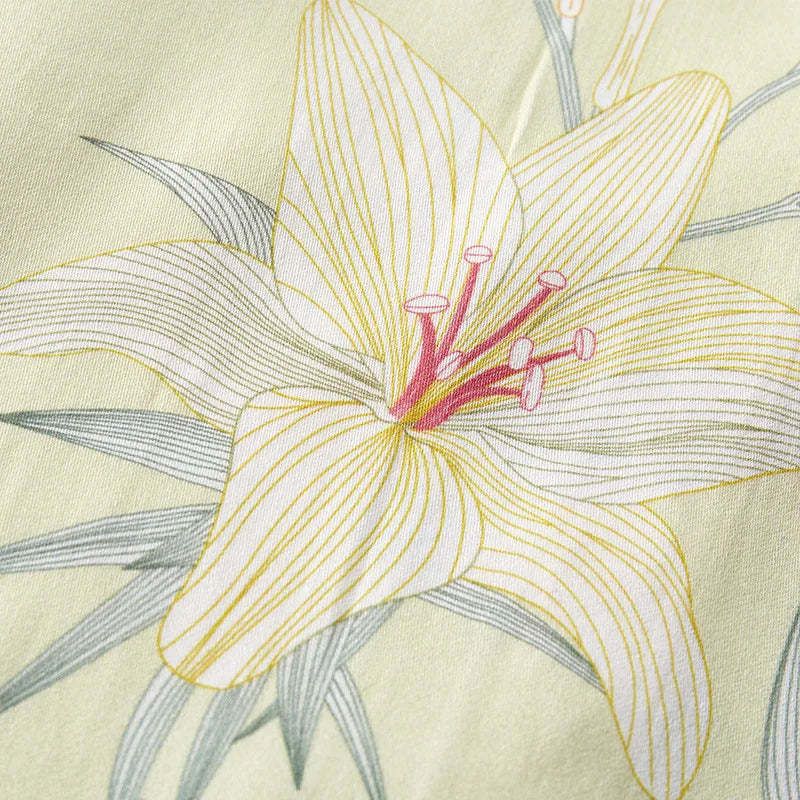 To maintain the silky feel and vibrant floral print of your Elegant Silk-Like Sleepwear, always hand wash or machine wash on a gentle cycle with cold water.