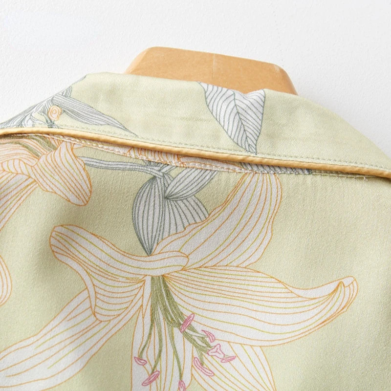 Luxury Floral Pajama Set – Elegant Silk-Like Sleepwear