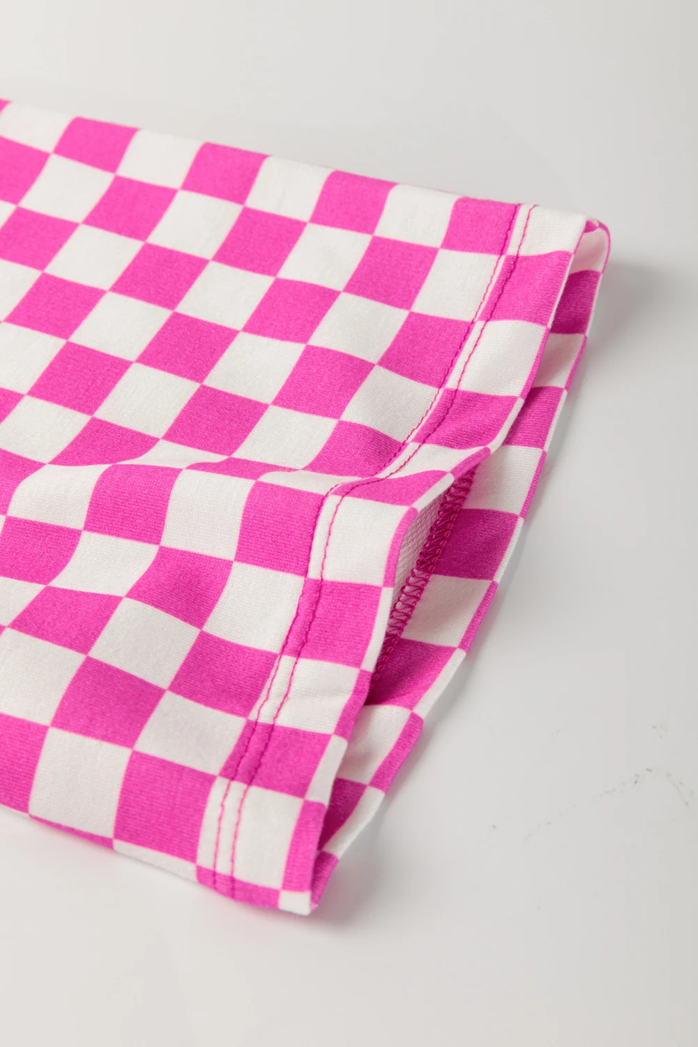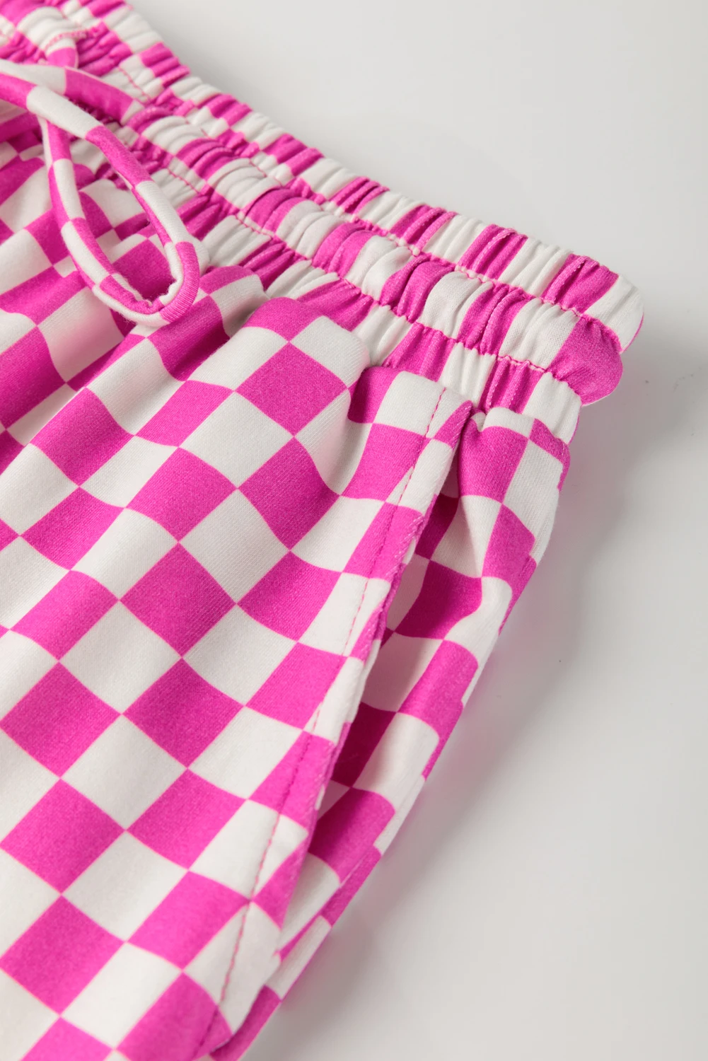 Shewin 2025 Women's Plaid Black Pink Checkered Top and Short Casual 2pcs Set