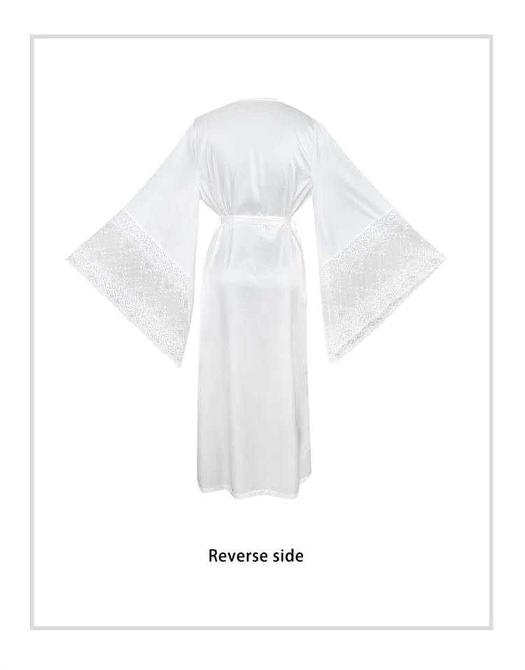 Women Robe White Satin Dressing Gown Lace Splicing Pijama Long Sleeved Luxury Bathrobe Home Wear Nightgowns Elegent Shower Robe